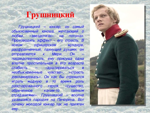 Анализ характера Грушницкого и его роль в «Герое нашего времени»